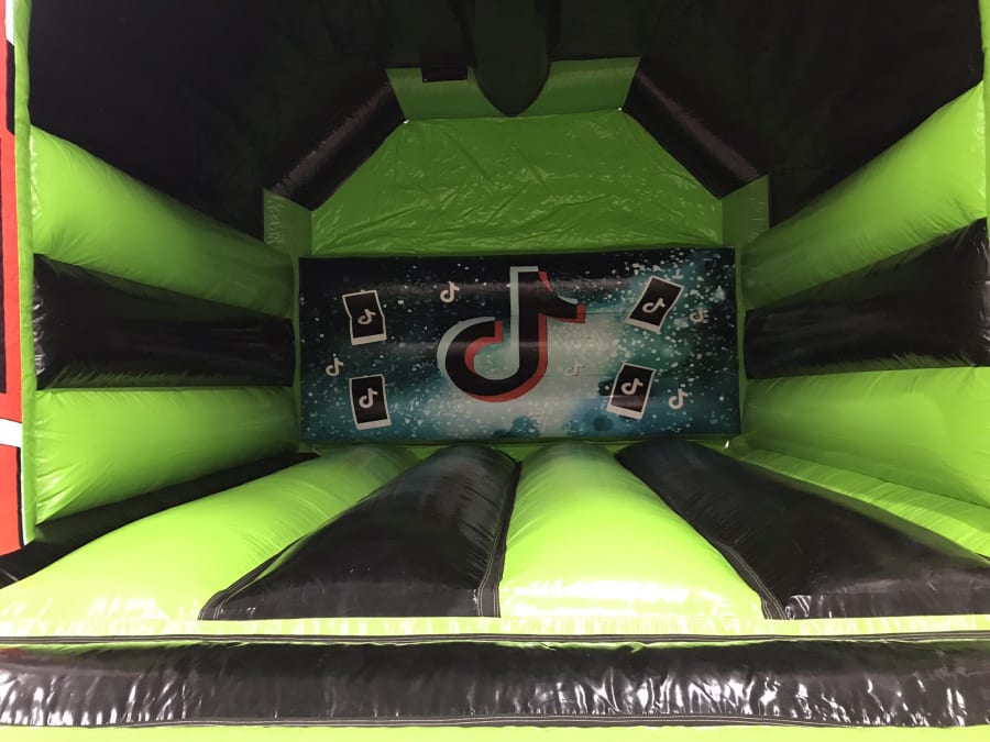 Bouncy Castle Hire 12ft x 15ft Black & Green A Frame TikTok Theme in Long Sutton, Sutton Bridge, Holbeach, Spalding, Pinchbeck, Bourne, Kirton, Boston, Wisbech, Kings Lynn, Downham Market, March, Peterborough, Sandringham, Hunstanton, and surrounding areas