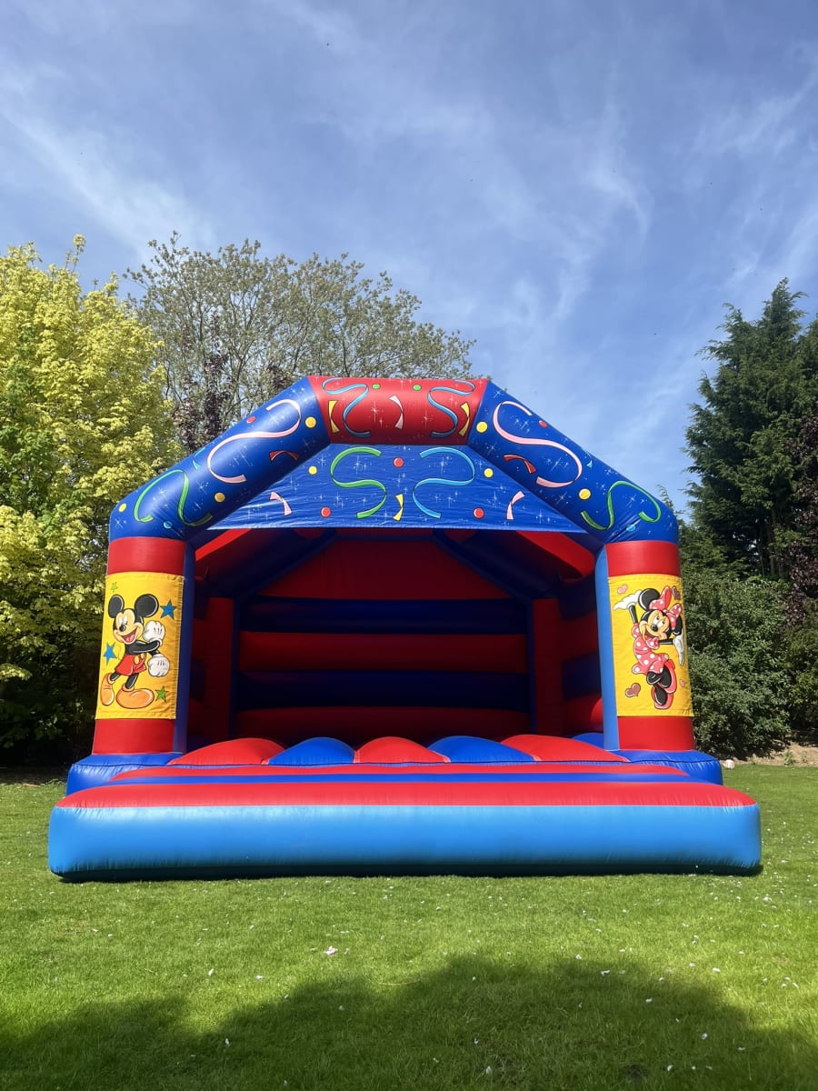 We proudly offer Bouncy Castle Hire 17ft X 16ft Party A Frame Mickey Mouse Theme (Disco Ready) in Long Sutton, Sutton Bridge, Holbeach, Spalding, Pinchbeck, Bourne, Kirton, Boston, Wisbech, Kings Lynn, Downham Market, March, Peterborough, Sandringham, Hunstanton, and surrounding areas. Our friendly team ensures prompt delivery, professional setup, and a hassle-free experience so you can focus on enjoying your event!