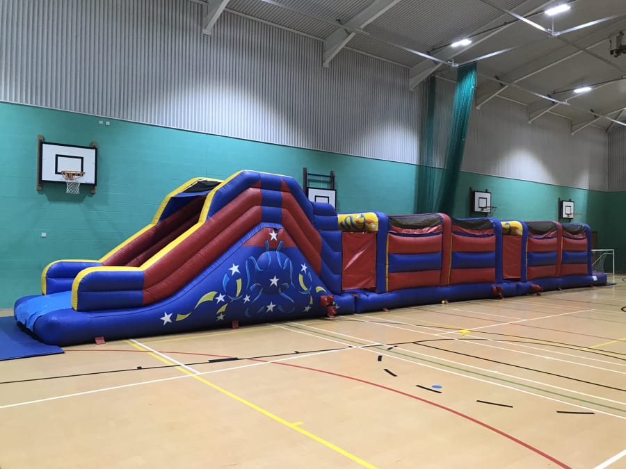 Our 70ft 3 Part Red and Blue Assault Course A brings together vibrant colours and challenging features for hours of energetic play. From thrilling tunnels to tricky climbs and exhilarating slides, guests will race, jump, and scramble their way to the finish line. The three-part design ensures a dynamic experience that keeps everyone laughing and engaged. 🤩