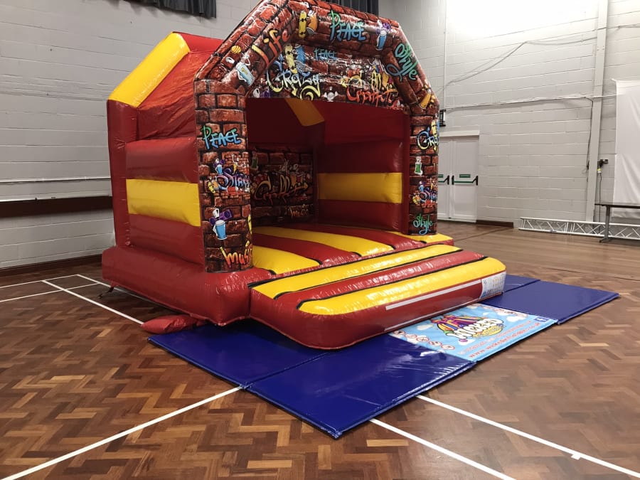 Bring colour, bounce and a cheeky splash of street art to your next party with our 12ft x 12ft Yellow & Red A Frame Graffiti Theme — a crowd-pleaser for kids, parents and anyone who appreciates a bit of urban flair 🎨🕺. Perfect for garden parties, school fetes, and birthday bashes, this bright A-frame bouncy castle combines safe design with bold graffiti-style graphics for maximum fun and photo opportunities.