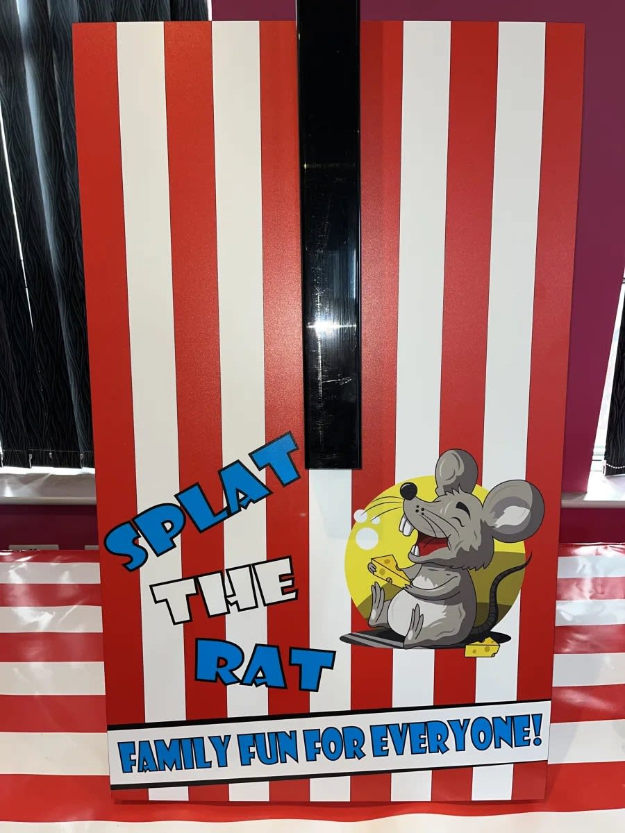Looking for a classic carnival game to add some excitement and laughter to your next party or event? Splat the Rat is the perfect choice! With our A Frame Carnival Game hire Splat the Rat in Long Sutton, Sutton Bridge, Holbeach, Spalding, Pinchbeck, Bourne, Kirton, Boston, Wisbech, Kings Lynn, Downham Market, March, Peterborough, Sandringham, Hunstanton, and surrounding areas, you can easily bring all the fun of the fairground straight to your doorstep. 🐭🎉
