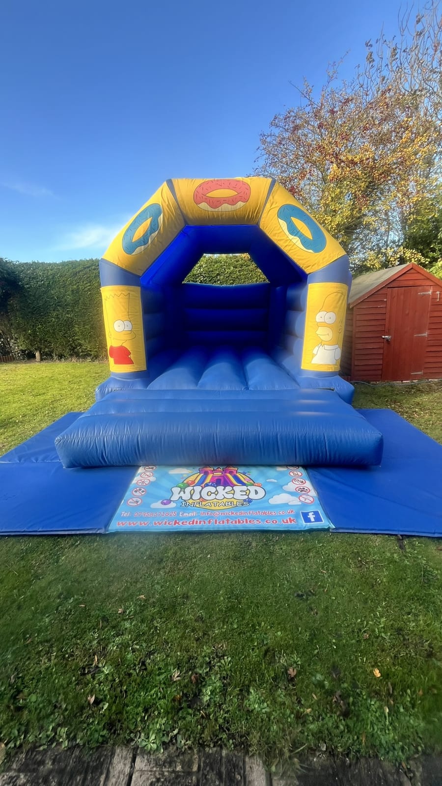 Bouncy Castle Hire 15ft X 10ft Blue A Frame Simpsons Theme in Long Sutton, Sutton Bridge, Holbeach, Spalding, Pinchbeck, Bourne, Kirton, Boston, Wisbech, Kings Lynn, Downham Market, March, Peterborough, Sandringham, Hunstanton, and Surrounding Areas