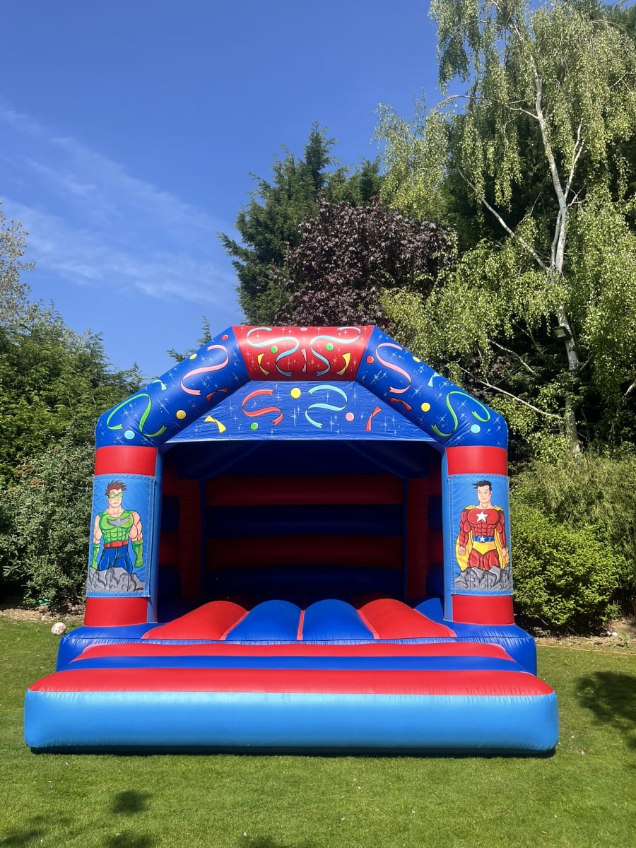 Searching for Bouncy Castle Hire 16ft X 14ft Party A Frame Superheroes Theme (Disco Ready) in Long Sutton, Sutton Bridge, Holbeach, Spalding, Pinchbeck, Bourne, Kirton, Boston, Wisbech, Kings Lynn, Downham Market, March, Peterborough, Sandringham, Hunstanton, and surrounding areas? We’ve got you covered! Our friendly team ensures prompt delivery, professional setup, and collection—making your experience hassle-free from start to finish. 🚚👍