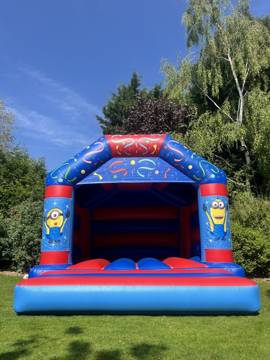 Bring the excitement and energy of the Minions to your next celebration with our bouncy castle hire 16ft X 14ft Party A Frame Minions Theme (Disco Ready) in Long Sutton, Sutton Bridge, Holbeach, Spalding, Pinchbeck, Bourne, Kirton, Boston, Wisbech, Kings Lynn, Downham Market, March, Peterborough, Sandringham, Hunstanton, and surrounding areas! This vibrant and eye-catching bouncy castle is perfect for birthdays, family gatherings, school parties, or any special event where kids want to jump, play, and have endless fun. πŸŽ‰πŸŽˆ