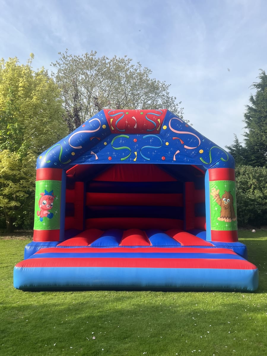 Looking to take your next event to the next level? Our Bouncy Castle Hire 17ft X 16ft Party A Frame Moshi Theme (Disco Ready) in Long Sutton, Sutton Bridge, Holbeach, Spalding, Pinchbeck, Bourne, Kirton, Boston, Wisbech, Kings Lynn, Downham Market, March, Peterborough, Sandringham, Hunstanton, and surrounding areas is the perfect way to add fun, excitement, and a dash of disco magic to any celebration!