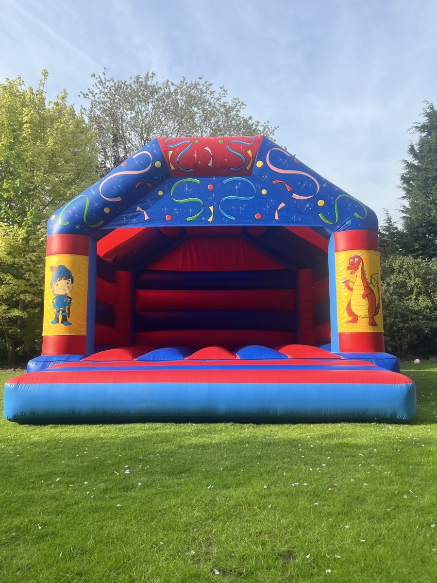 Our bouncy castle hire service ensures a hassle-free and enjoyable experience from start to finish. The 17ft X 16ft Party A Frame Mike the Knight Theme (Disco Ready) is designed with both fun and safety in mind. Its large bouncing area accommodates multiple children at once, making it ideal for larger parties and family celebrations. Plus, the disco-ready setup allows you to create a party atmosphere with lights and music, ensuring your event stands out from the rest! 🔊💃