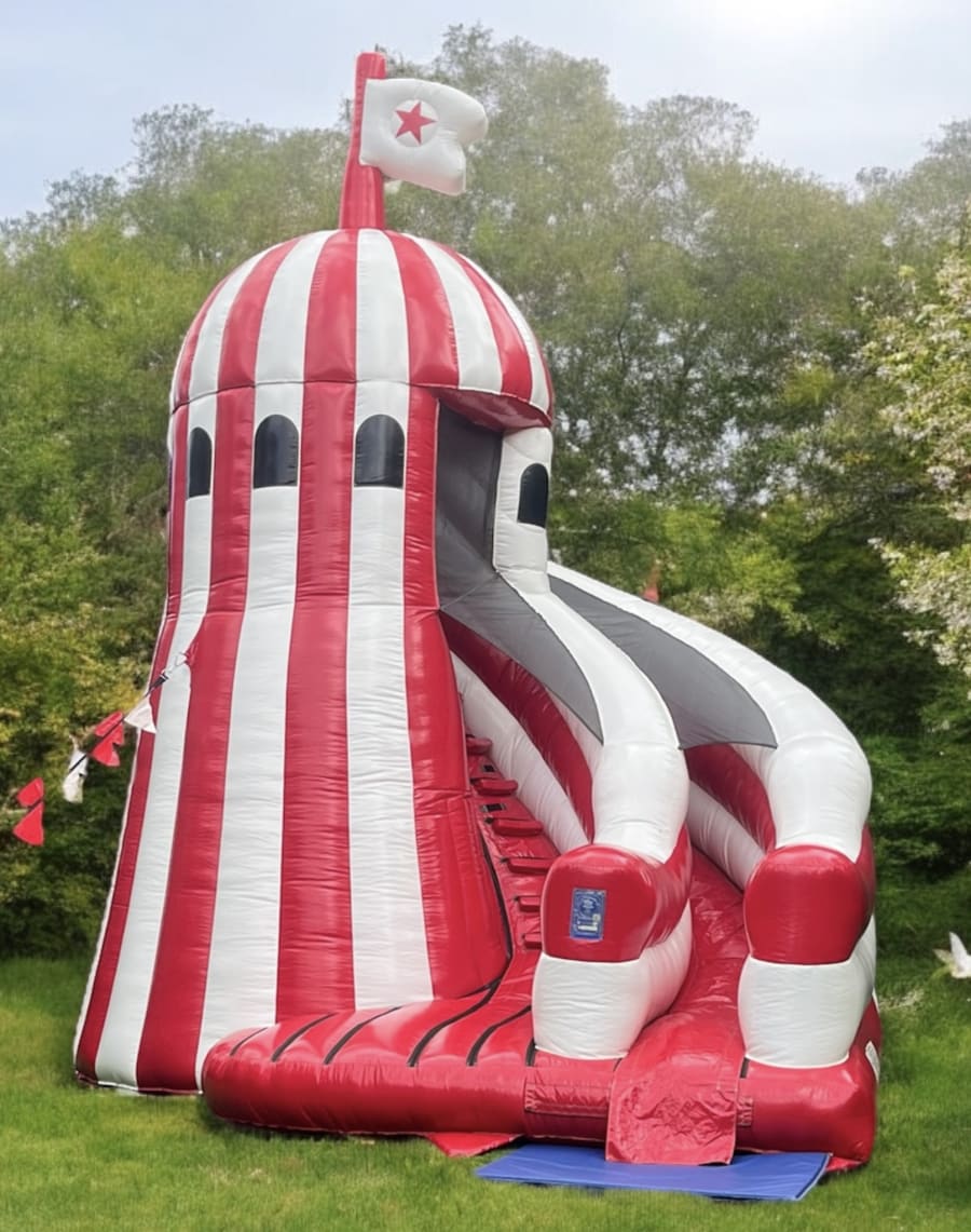 - Helter Skelter Slide – 23ft High: Take your event to new heights with our towering Helter Skelter Slide! Its impressive height and classic spiral design promise endless thrills for kids and adults alike.